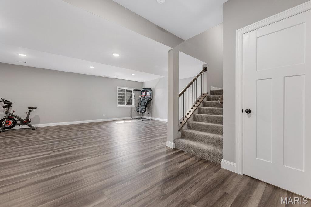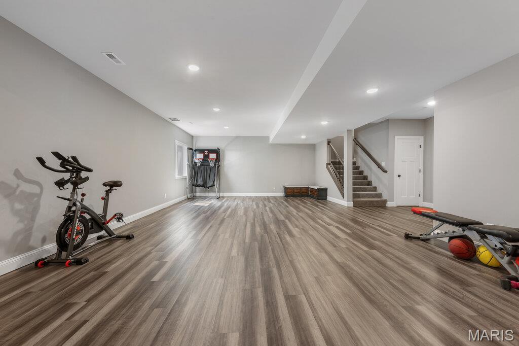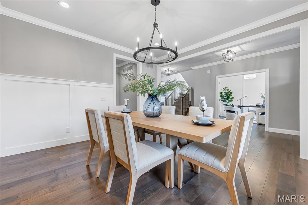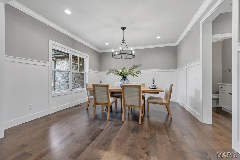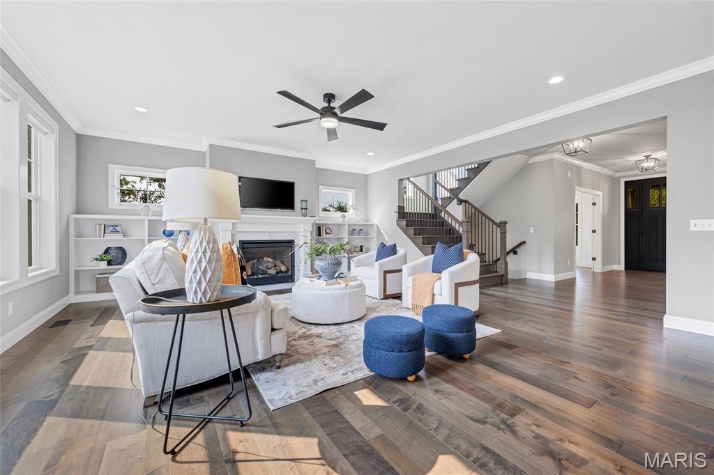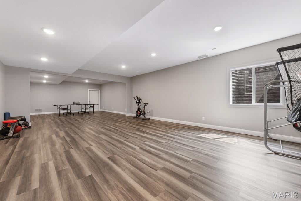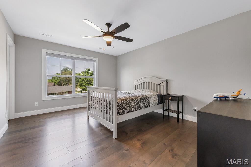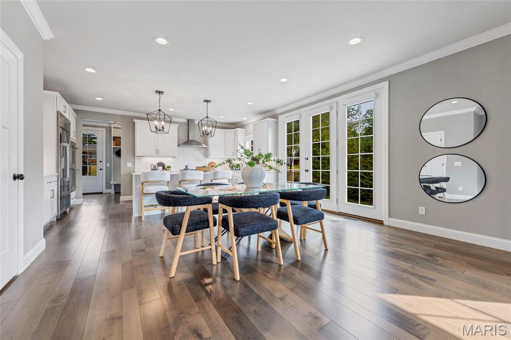 Beautiful newer home in Ladue School District! Just 3 years old, this modern, open floor plan has tons of natural light! The great room opens to a custom kitchen with large center island and top-of-the-line appliances, quartz countertops, 42" cabinets and beautiful wood floors throughout. There is also a main floor laundry with 42 inch cabinets and a mud room. Off of the entry foyer is a cozy den/office with wainscoting & crown molding. The primary bedroom on 2nd floor features crown molding, spa-like bath with double sink vanity and custom shower. The additional 3 bedrooms on the 2nd floor are all ensuite. Large finished lower level with huge recreational room plus an additional bedroom and full bath. This is a great opportunity to live in newer construction in Ladue School District!