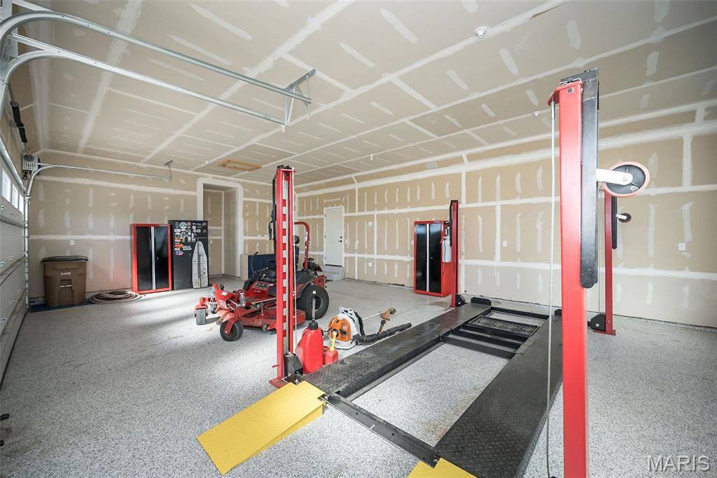 Welcome to 807 Iron Horse Trail, a stunning modern custom built farmhouse set on a picturesque 5.05-acre lot in Labadie. This home is a perfect blend of modern sophistication and rustic charm, featuring exquisite wood beams, luxury vinyl plank floors and other luxurious amenities throughout its 2,757 square feet of living space. The welcoming foyer is flanked by a beautiful office and leads to a spacious living area adorned with oversized windows and a cozy wood burning fireplace. The gourmet kitchen, equipped with a 6-burner cooktop, custom hood and copper farm sink glows under elegant chandeliers and recessed lighting, making it a delightful space for both cooking and entertaining. The primary suite is a true sanctuary with a spa-like ensuite boasting a custom shower, a soaking tub and a large walk-in closet with a separate entrance to the main floor laundry. Large secondary bedrooms provide ample space for family or guests, with large hall bath and a thoughtfully designed powder room for convenience. You’ll enjoy the practicality of main floor laundry, featuring a unique dog/foot bath and tucked behind the kitchen for family convenience but out of the way of guests. The oversized three-car garage offers abundant storage and workspace. Outside, a private pond enhances the estate's peaceful atmosphere, while a maintenance free deck and concrete patio provide lovely settings for outdoor relaxation and are ideal for gatherings. Features of this home include a security system, central vac, and sound insulation on the interior walls of the great room, office and foyer. 807 Labadie is the perfect home for country living, while being close to suburban amenities.