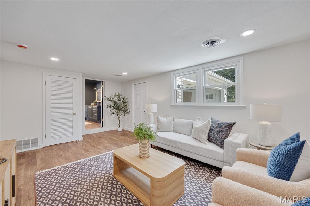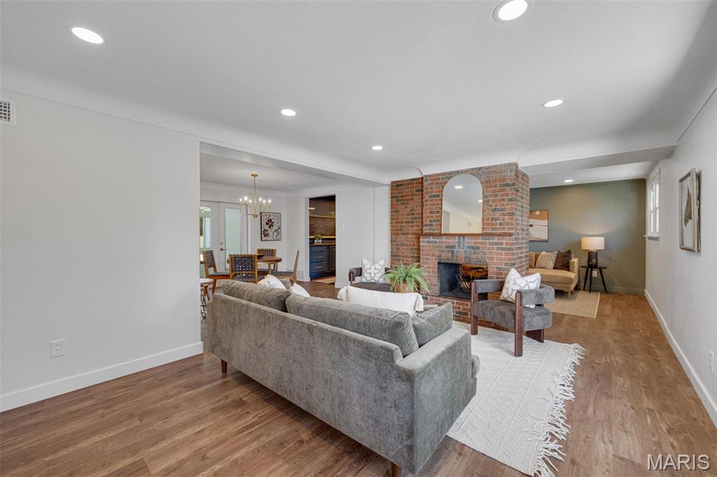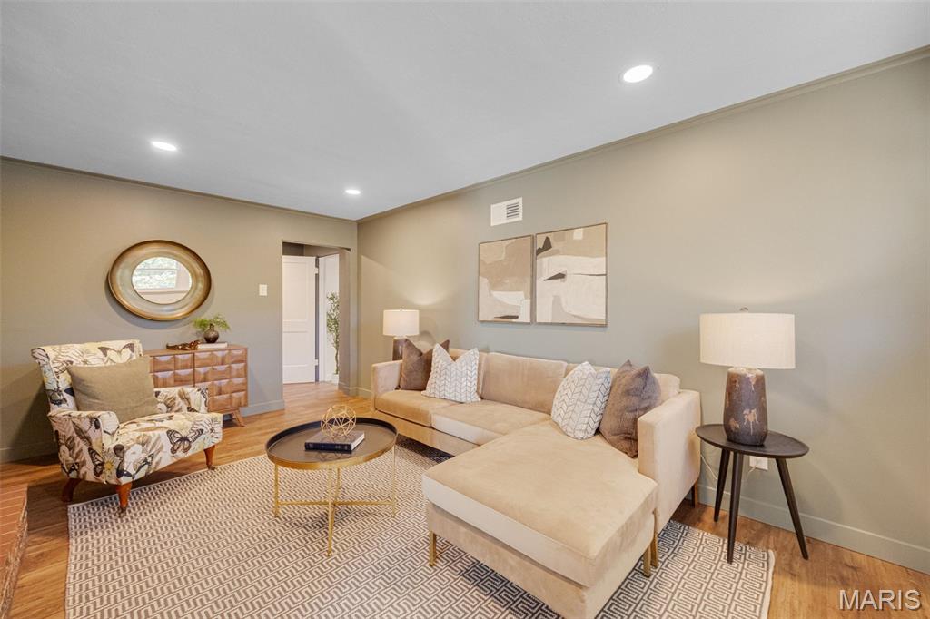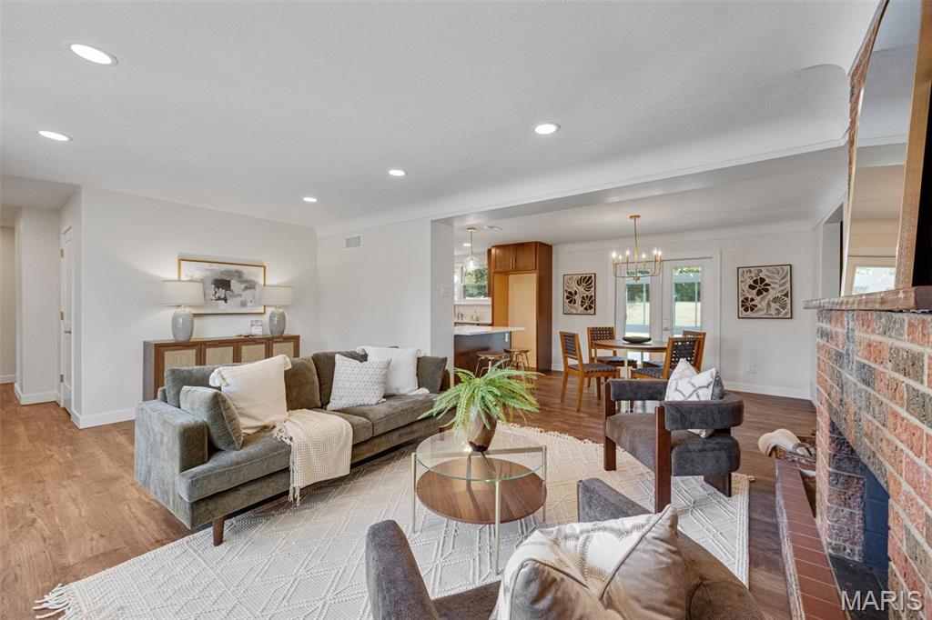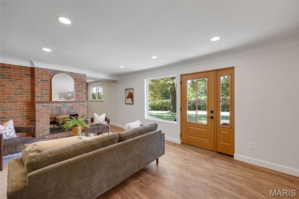 Every now and then, a home comes along that simply feels right — one that’s not just beautifully designed, but thoughtfully reimagined for the way people actually live today. This completely updated ranch offers all the benefits of a new build, with the charm and character of a well-established neighborhood. From the moment you walk in, the design immediately draws you in — open, inviting, and filled with natural light. The layout was intentionally crafted with universal design principles in mind, creating spaces that are both beautiful and accessible. Some widened doorways, single-level living, and smart kitchen features make this home comfortable for everyone — whether you’re a busy family, someone looking to age in place, or simply craving ease and flow in your daily life. The kitchen is truly the heart of this home — a stunning showcase of transitional design that blends warmth, texture, and timeless appeal. You’ll love the massive walk-in pantry, and the generous counter space perfect for cooking, entertaining, or gathering with friends. Just off the dining room is your own color-drenched butler’s pantry. The perfect spot to make coffee. Yes, every element of this home was specifically chosen to balance style with function, creating a space that’s as practical as it is beautiful. With three separate living areas, you have flexibility for how you want to live. Whether it’s a cozy night by the double-sided fireplace, movie time with the family, or hosting friends for the big game — there’s space for it all. The glass-enclosed sunroom might just be everyone’s favorite spot — it’s warm, bright, and peaceful year-round, the perfect place for morning coffee, reading, or watching the seasons change. All three bathrooms have been completely renovated with designer finishes, creating spa-like spaces that feel fresh and serene. The primary suite is dreamy — spacious, calming, and styled to perfection — truly a Pinterest-worthy retreat. The guest bedroom is equally charming, with its own full bath that any visitor will adore. Functionality meets style in the large laundry and mudroom addition, complete with custom built-ins that keep everything organized and easy to access. Storage is plentiful throughout, including a fantastic shed that could easily be converted into a home office, workout space, or creative studio. The backyard offers endless possibilities — large enough for entertaining, gardening, or even adding a pool. The two car garage provides plenty of space for vehicles and storage. Set on a quiet street, this home is just a short walk to the elementary school and Stacey Park. You’ll love being part of a walkable community where neighbors know each other. Centrally located and part of the top-rated Ladue School District, you’re minutes from shops, restaurants, and everything St. Louis has to offer. Whether you’re downsizing and want the ease of one-level living, or simply ready for a move-in-ready home that’s been updated with care, this property checks every box. It’s the perfect balance of beauty and function, comfort and sophistication — a place where design meets livability and every detail has been thoughtfully considered. This isn’t just a house; it’s a home that invites you to slow down, stay awhile, and start your next chapter in a space that truly reflects who you are.
