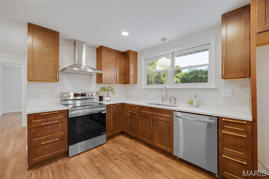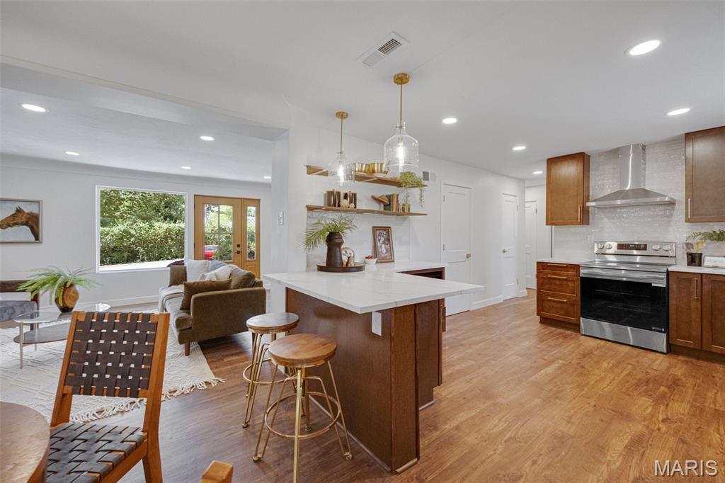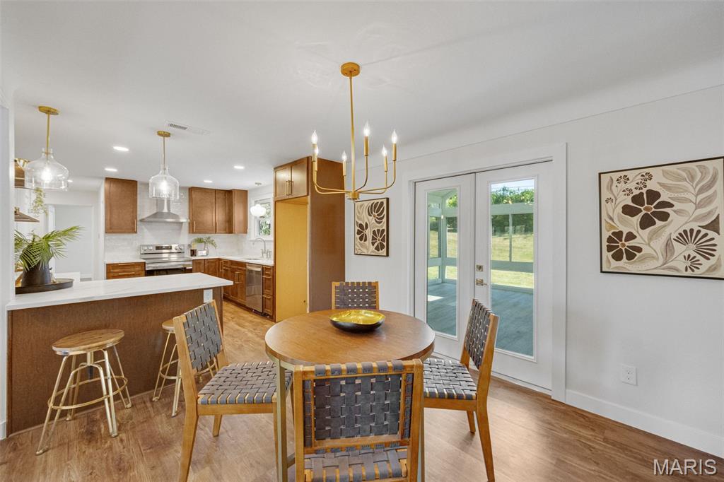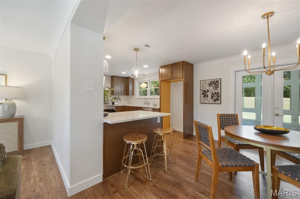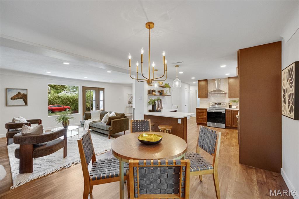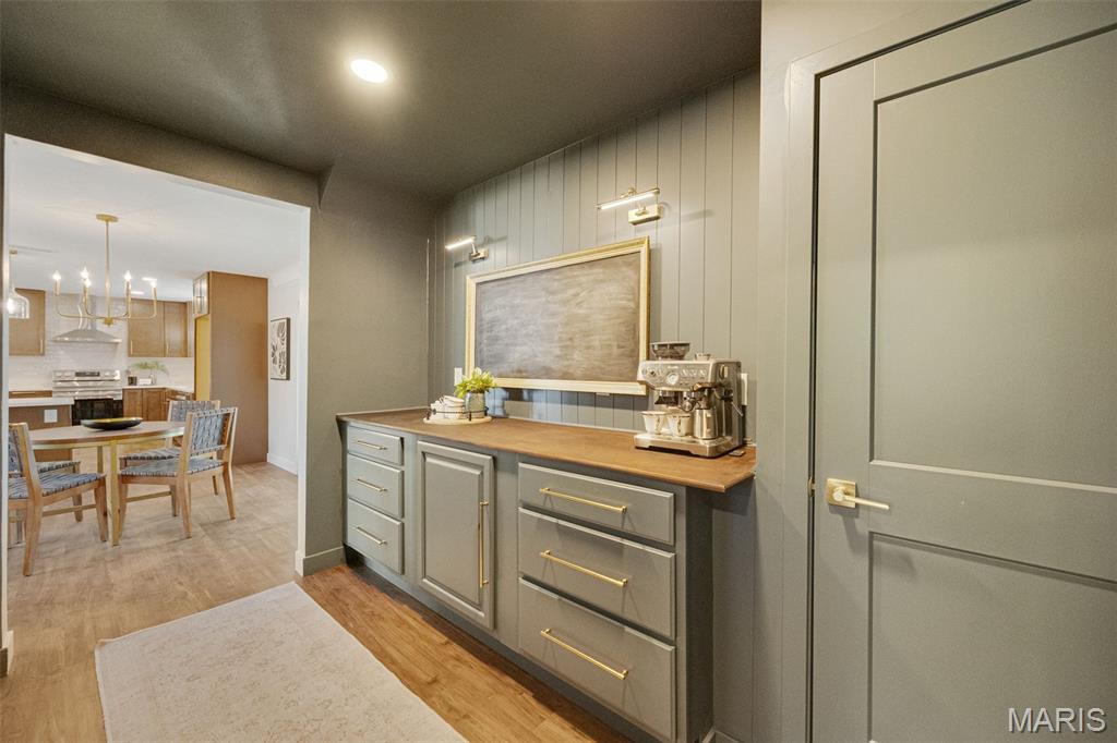 Every now and then, a home comes along that simply feels right — one that’s not just beautifully designed, but thoughtfully reimagined for the way people actually live today. This completely updated ranch offers all the benefits of a new build, with the charm and character of a well-established neighborhood. From the moment you walk in, the design immediately draws you in — open, inviting, and filled with natural light. The layout was intentionally crafted with universal design principles in mind, creating spaces that are both beautiful and accessible. Some widened doorways, single-level living, and smart kitchen features make this home comfortable for everyone — whether you’re a busy family, someone looking to age in place, or simply craving ease and flow in your daily life. The kitchen is truly the heart of this home — a stunning showcase of transitional design that blends warmth, texture, and timeless appeal. You’ll love the massive walk-in pantry, and the generous counter space perfect for cooking, entertaining, or gathering with friends. Just off the dining room is your own color-drenched butler’s pantry. The perfect spot to make coffee. Yes, every element of this home was specifically chosen to balance style with function, creating a space that’s as practical as it is beautiful. With three separate living areas, you have flexibility for how you want to live. Whether it’s a cozy night by the double-sided fireplace, movie time with the family, or hosting friends for the big game — there’s space for it all. The glass-enclosed sunroom might just be everyone’s favorite spot — it’s warm, bright, and peaceful year-round, the perfect place for morning coffee, reading, or watching the seasons change. All three bathrooms have been completely renovated with designer finishes, creating spa-like spaces that feel fresh and serene. The primary suite is dreamy — spacious, calming, and styled to perfection — truly a Pinterest-worthy retreat. The guest bedroom is equally charming, with its own full bath that any visitor will adore. Functionality meets style in the large laundry and mudroom addition, complete with custom built-ins that keep everything organized and easy to access. Storage is plentiful throughout, including a fantastic shed that could easily be converted into a home office, workout space, or creative studio. The backyard offers endless possibilities — large enough for entertaining, gardening, or even adding a pool. The two car garage provides plenty of space for vehicles and storage. Set on a quiet street, this home is just a short walk to the elementary school and Stacey Park. You’ll love being part of a walkable community where neighbors know each other. Centrally located and part of the top-rated Ladue School District, you’re minutes from shops, restaurants, and everything St. Louis has to offer. Whether you’re downsizing and want the ease of one-level living, or simply ready for a move-in-ready home that’s been updated with care, this property checks every box. It’s the perfect balance of beauty and function, comfort and sophistication — a place where design meets livability and every detail has been thoughtfully considered. This isn’t just a house; it’s a home that invites you to slow down, stay awhile, and start your next chapter in a space that truly reflects who you are.