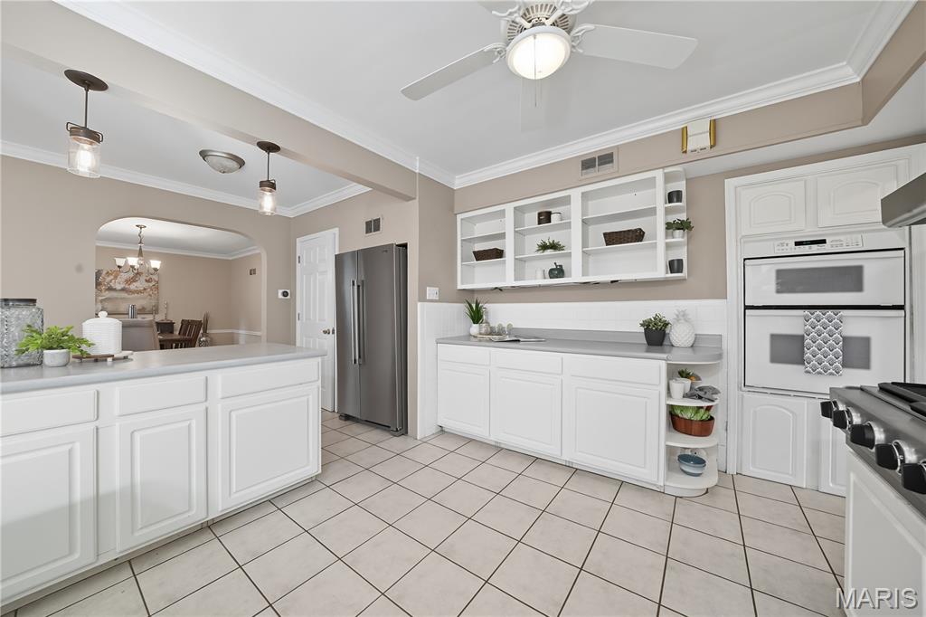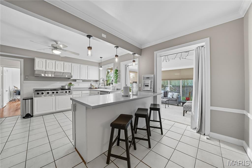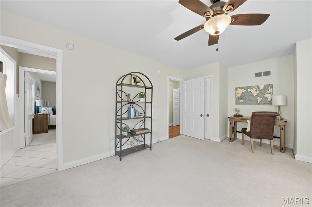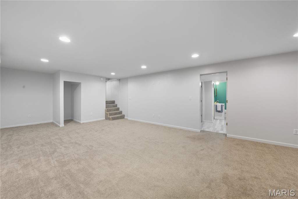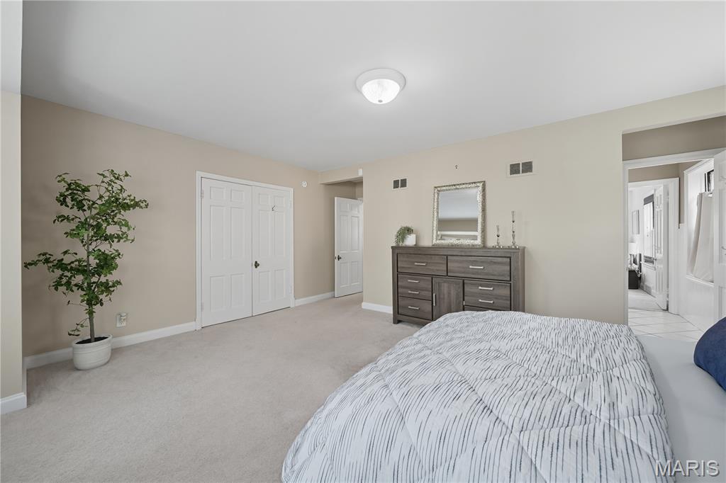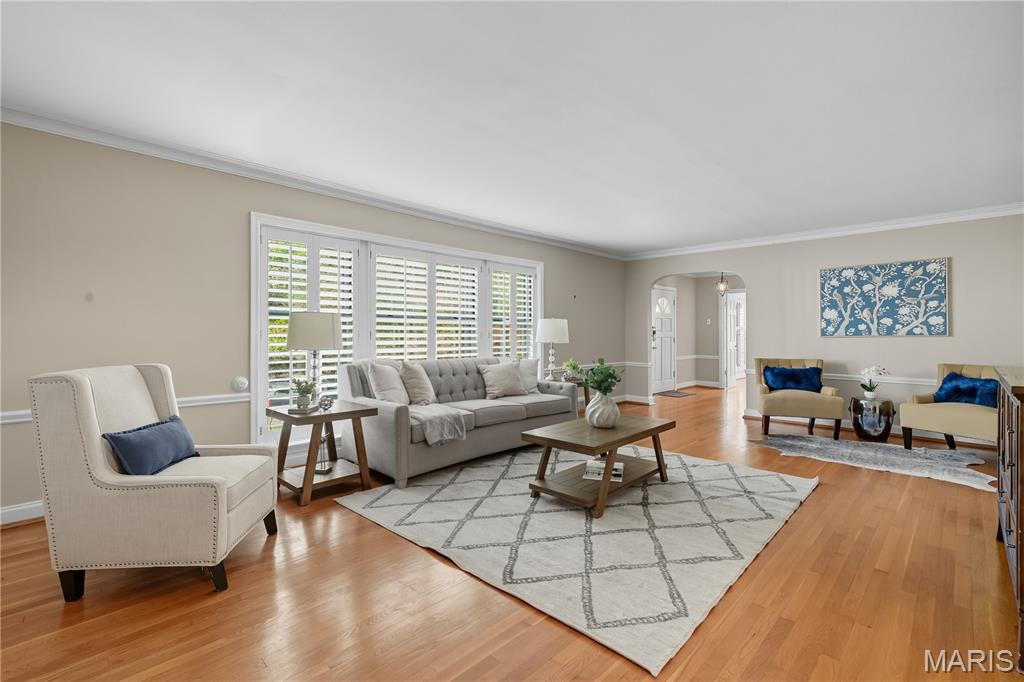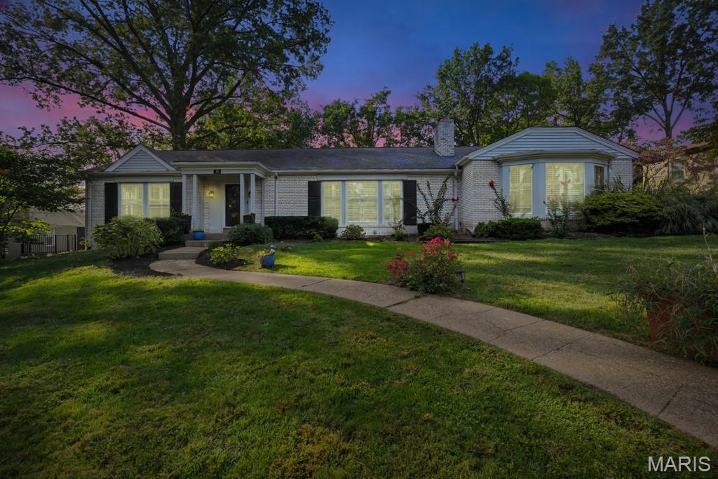 Four-bedroom, three-bath Ranch loaded with upgrades in a small, private, tree-lined cul-de-sac neighborhood within the Ladue School District. Offering approximately 2,855 square feet on two levels, this split-ranch layout provides two bedrooms and a full bath on each side—ideal for privacy, live-in family, a nanny, or out-of-town guests. The primary suite showcases a bay window, two closets, and a tiled tub/shower with a soaking tub, while the spacious eat-in kitchen features white cabinetry, a Jenn-Air gas cooktop, a double sink, stainless steel appliances, and a breakfast bar. Additional highlights include wood floors, custom blinds, two fireplaces, a fenced level and wooded backyard, a light-filled sunroom, and a finished lower level with newer carpet, a spacious Rec Room, plus a renovated bath with a shower. Conveniently located near highways, the airport, and Clayton, this home offers one-level living that appeals to buyers of all ages and includes a Home Protection Plan for the buyer for one year from the date of closing—Welcome home!