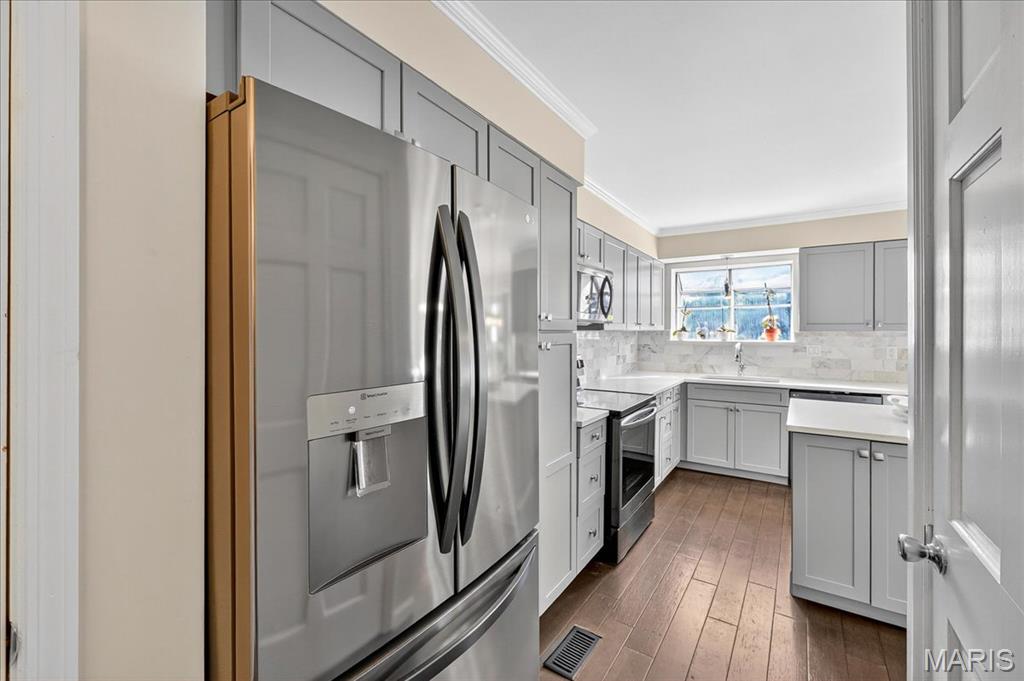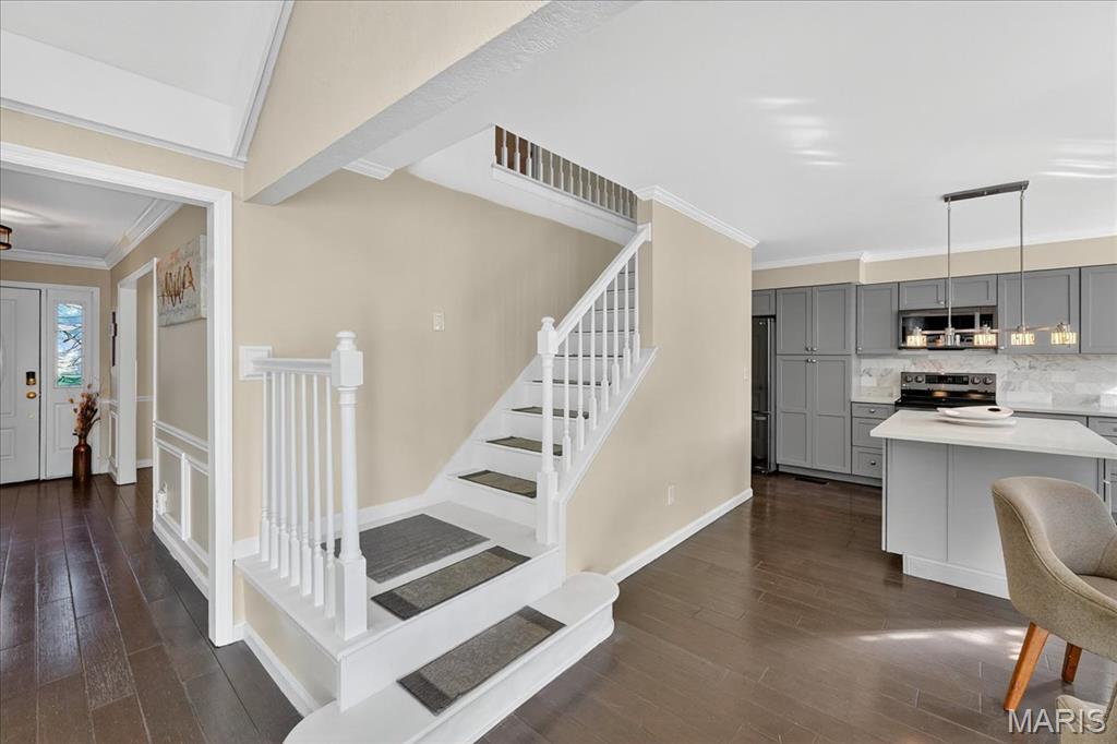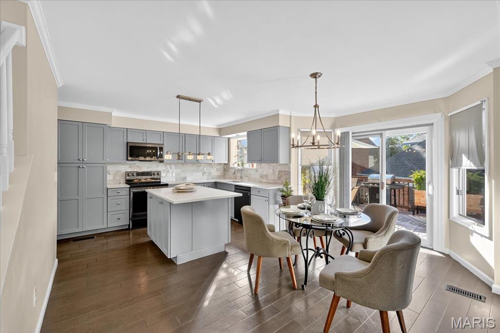Location. Style. Space. Comfort. Community. This stunning home in the heart of Webster Groves truly has it all-and now comes with the added assurance of being inspected and reclassified by the City as a 4-bedroom, 3.5 bathroom residence. (Certificate of Compliance, September 2025) Featuring 4 spacious bedrooms, 3 full bathrooms, and a soaring vaulted living room, this home balances calm sophistication with everyday livability. The open layout, natural light, and updated finishes create a welcoming, modern atmosphere. The finished walk-out lower level includes a legal bedroom and full bath - perfect for guests or a home office. New skylights (2025) with remote shades, smart-zoned HVAC, and HOA-maintained landscaped grounds, this residence offers the ideal blend of comfort, convenience, and verified value in one of Webster Grove's most sought-after communities.