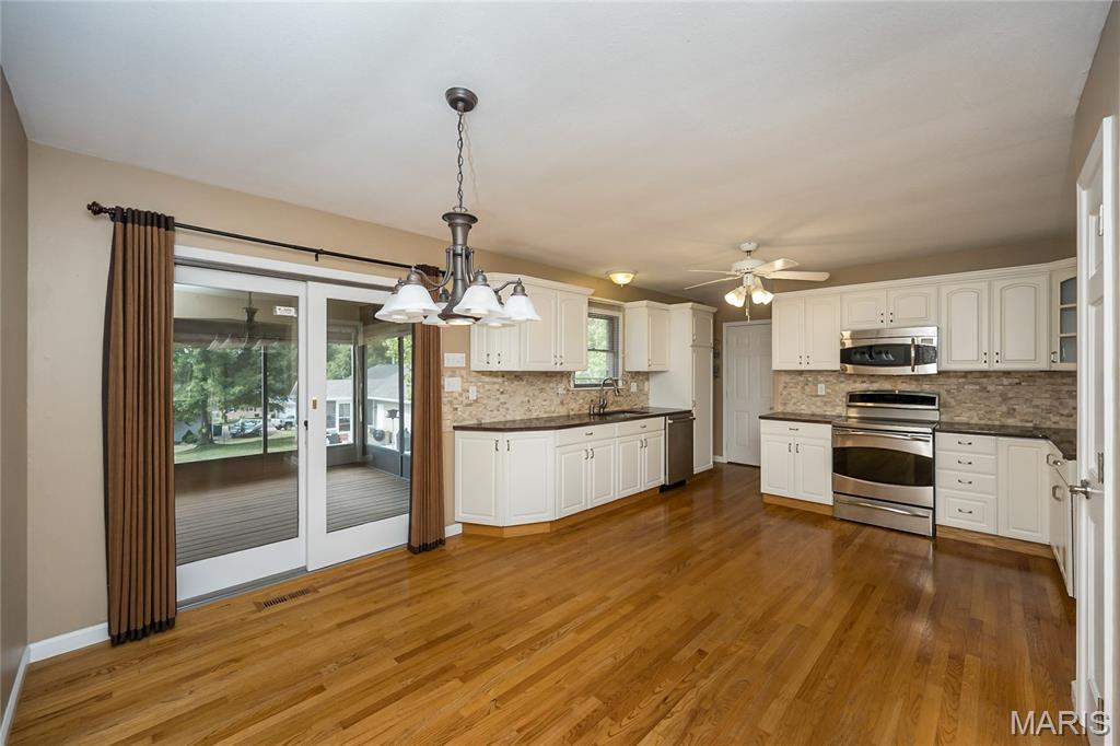 Welcome home to this charming brick ranch with great curb appeal! You'll love the metal roof, oversized 3 car side entry garage, that has an abundance of space. The kitchen features stainless steel appliances, granite countertops and plenty of cabinet space perfect for everyday cooking or entertaining. Beautiful hardwood floors and a cozy gas fireplace make the main level warm and welcoming. The spacious primary bedroom offers a private bath with a jetted tub for your own personal retreat. You will love the finished lower level that adds even more living space with a wet bar, sleeping area and a huge walk-in closet. Enjoy the outdoors on the screened porch off the kitchen, perfect for big gatherings or just to unwind and enjoy its peacefulness.