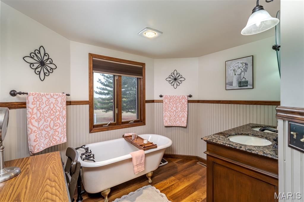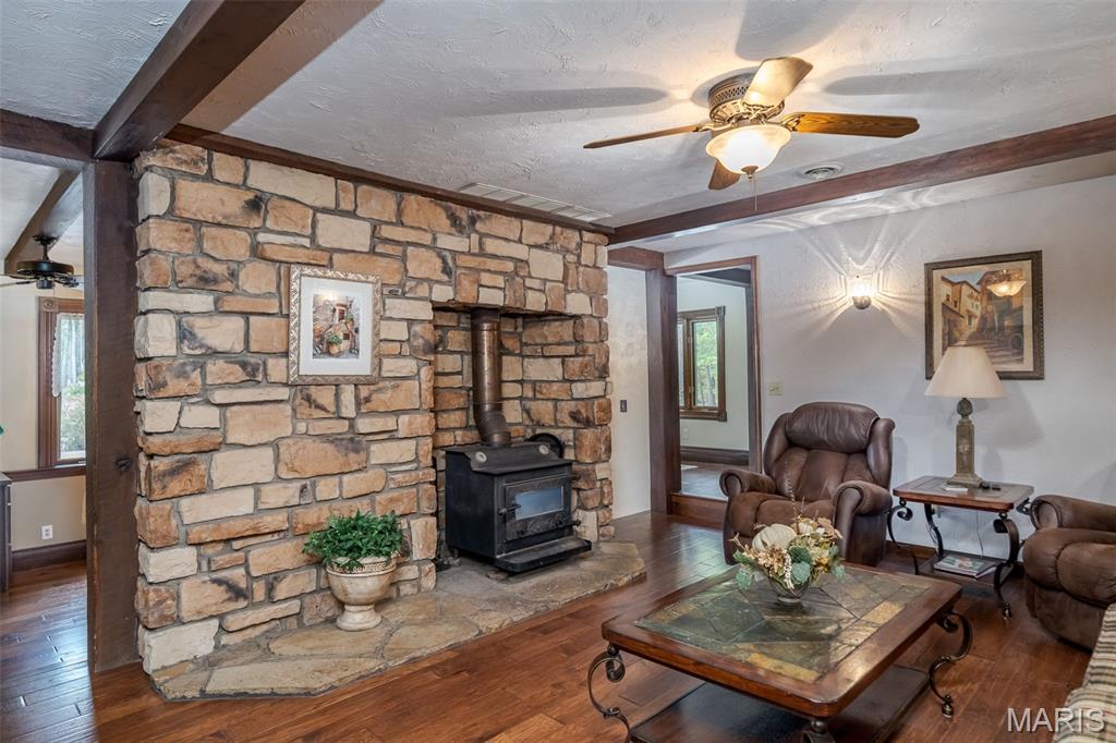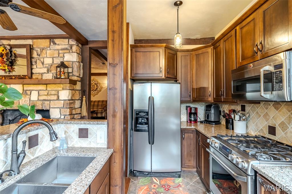 WONDERFUL STONE COTTAGE ON 14.77 ACRES Discover this charming stone cottage situated on a spacious 14.77 acre property offering the perfect blend of country living and modern comfort. Beautiful woodwork and custom millwork throughout. Gourmet, galley kitchen w/granite countertops, beautiful custom cabinets, SS appliances, farm sink, stunning see-through Stone fireplace connecting the dining rm and Living rm, Large, main floor laundry rm w/ sink. Two additional sleeping rooms, full bath and sun room or a great place to host that special family gathering. The beautiful wood staircase takes you to the main en-suite featuring a sitting area, 3 large closets, soaking tub, septate shower, large vanity w/dual sinks, and 2 additional bedrooms w/ a lovely hall bath. All of the bedrooms on the Upper level have French doors to their own private deck .Huge bonus room over the garage-perfect for a home office, media rm or additional living space. This property offers the rare combination of beautiful craftsmanship, modern amenities, and expansive land= ideal for those seeking a peaceful retreat without sacrificing convenience. Seller is offering a Choice Home Warranty