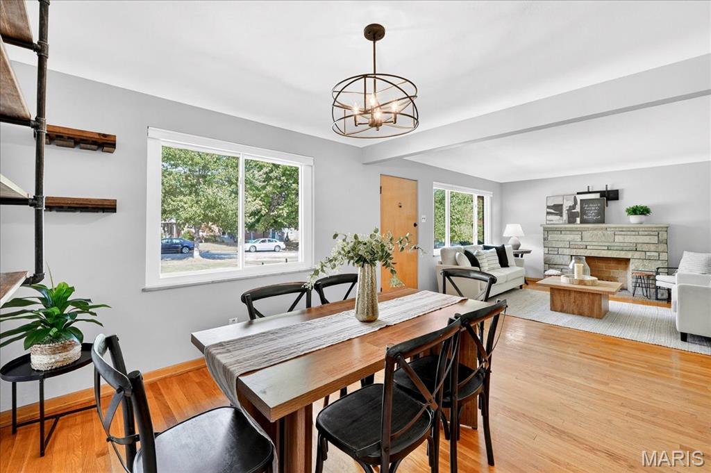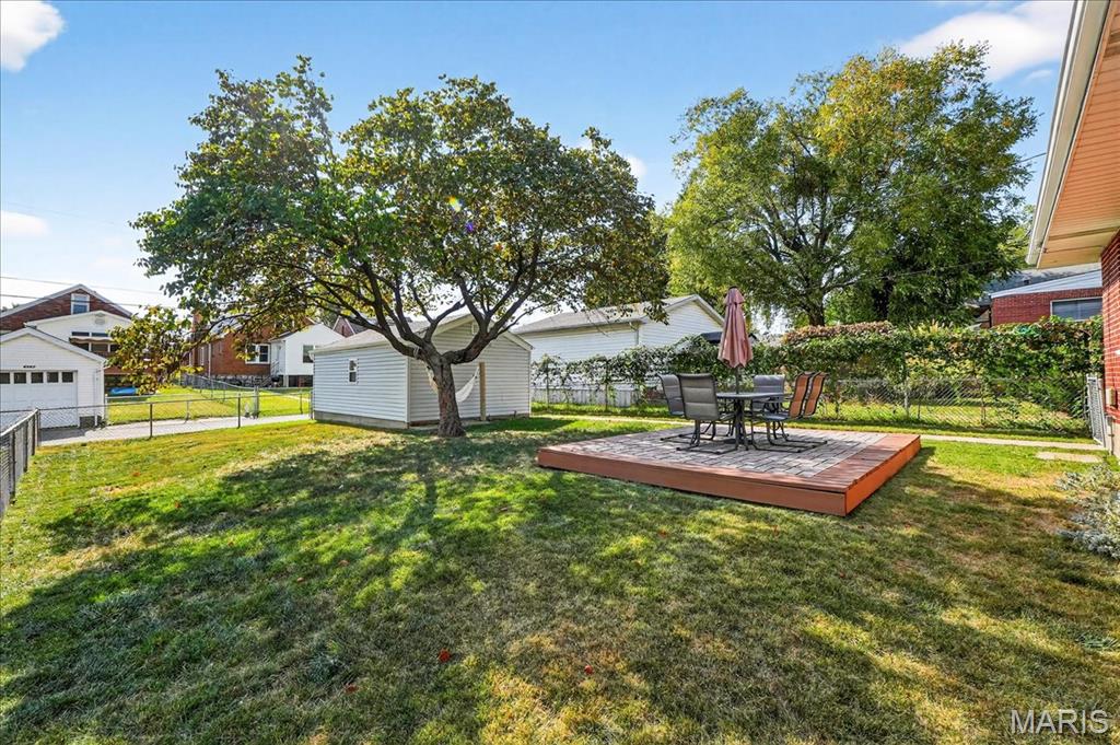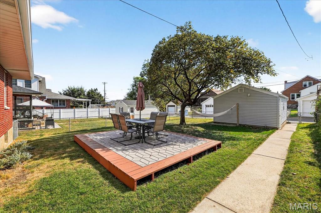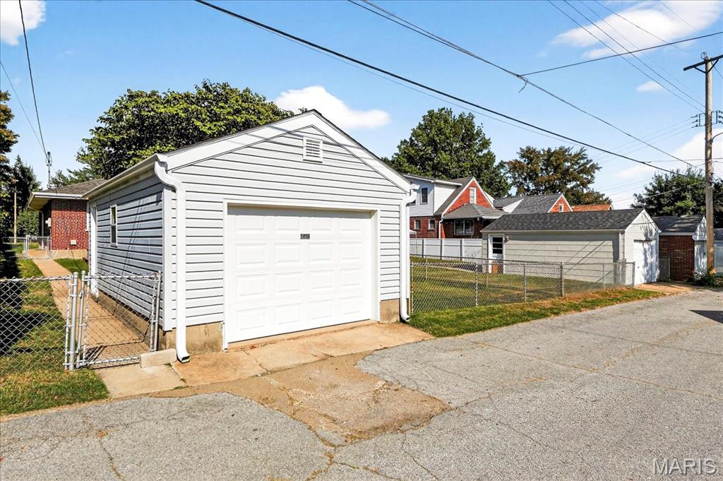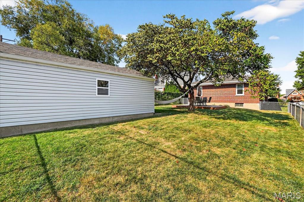 Welcome home to this charming bungalow tucked along one of St. Louis’ most desirable streets in the sought-after Lindenwood Park neighborhood! From the moment you arrive, you’ll love the inviting curb appeal, extra-wide tree-lined street, and spacious front yard. Inside, hardwood floors flow throughout the main level. The bright family room features a wall of windows, and the formal dining room opens to a kitchen with under-mounted sink and stainless refrigerator to stay. Down the hall are three comfortable bedrooms and a full bath. The lower level expands your living space with a large rec area, updated full bath, laundry room, and plenty of storage. Step outside to a fully fenced backyard with raised patio—perfect for relaxing or entertaining. Additional highlights include a detached oversized one-car garage, new roof (Aug 2025), updated plumbing and electric. Move-in ready and sure to impress!