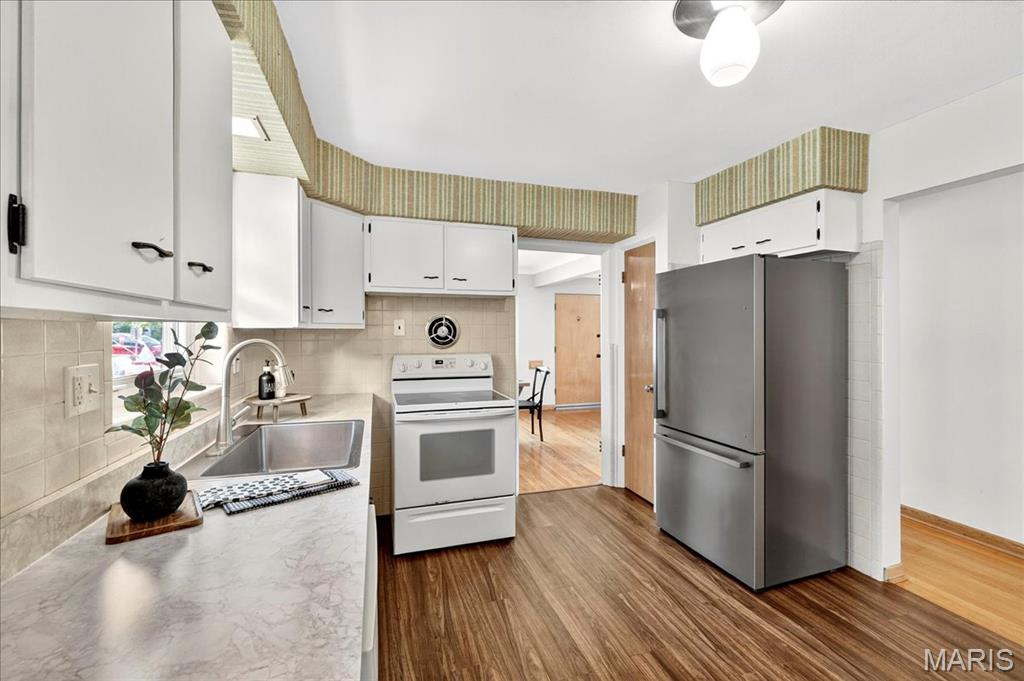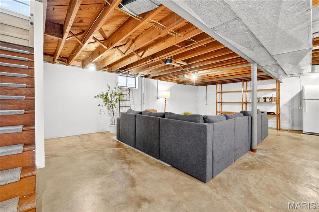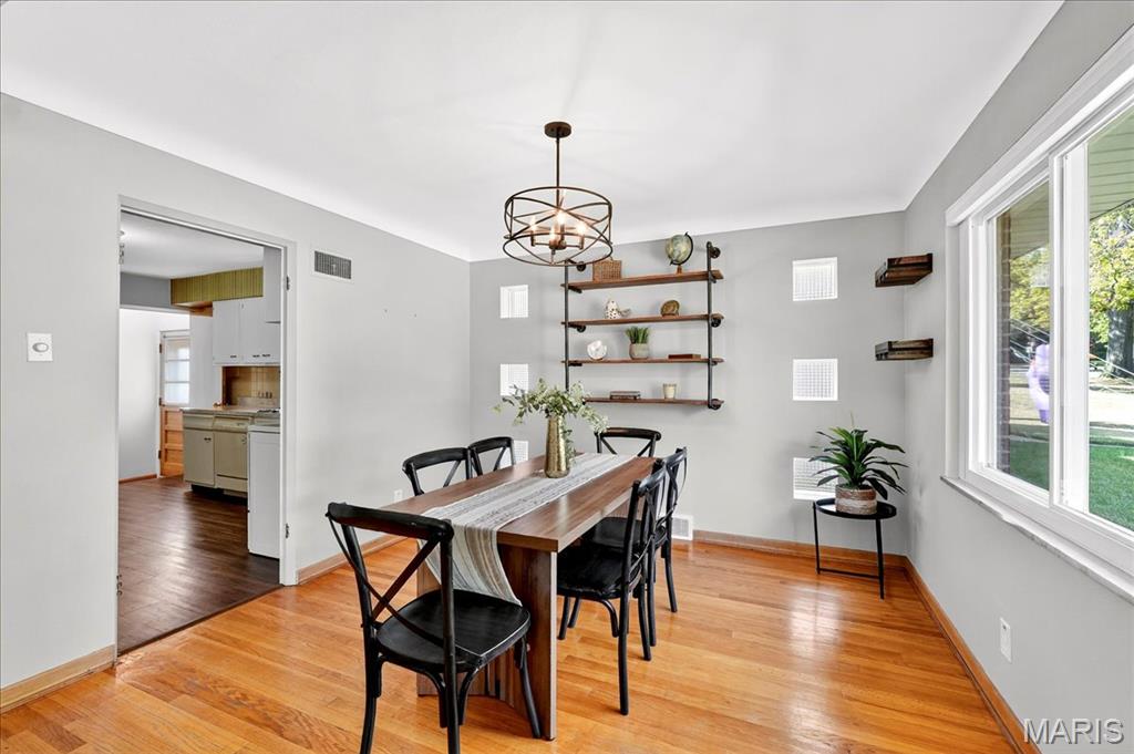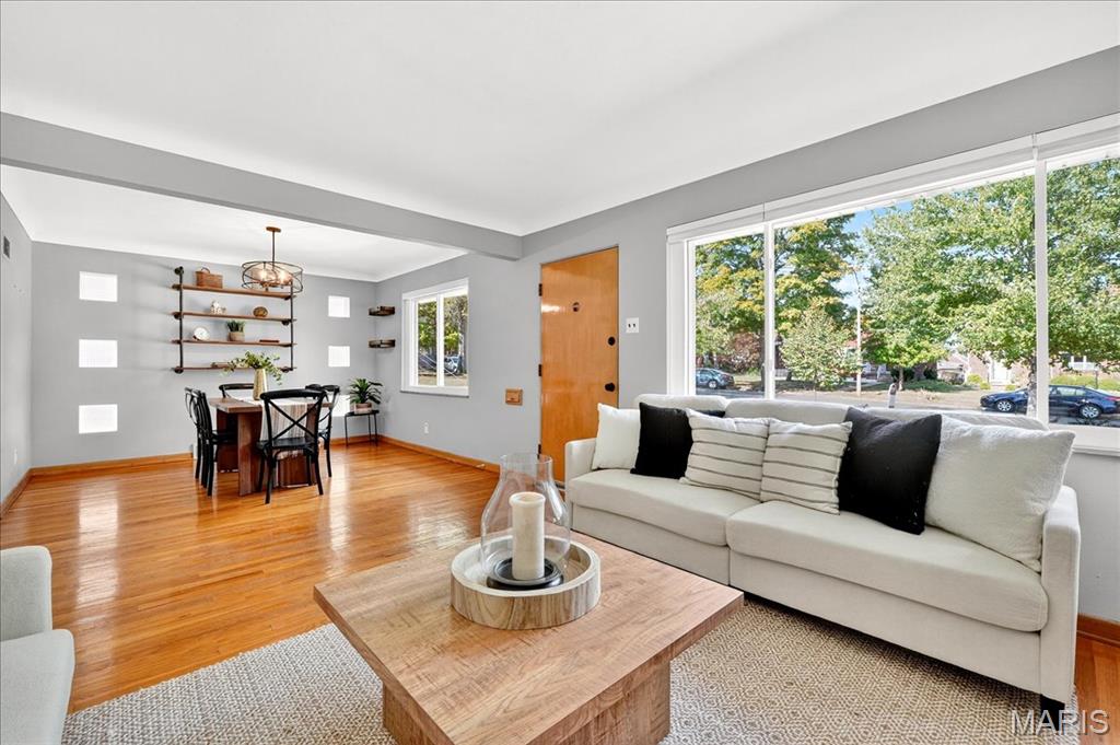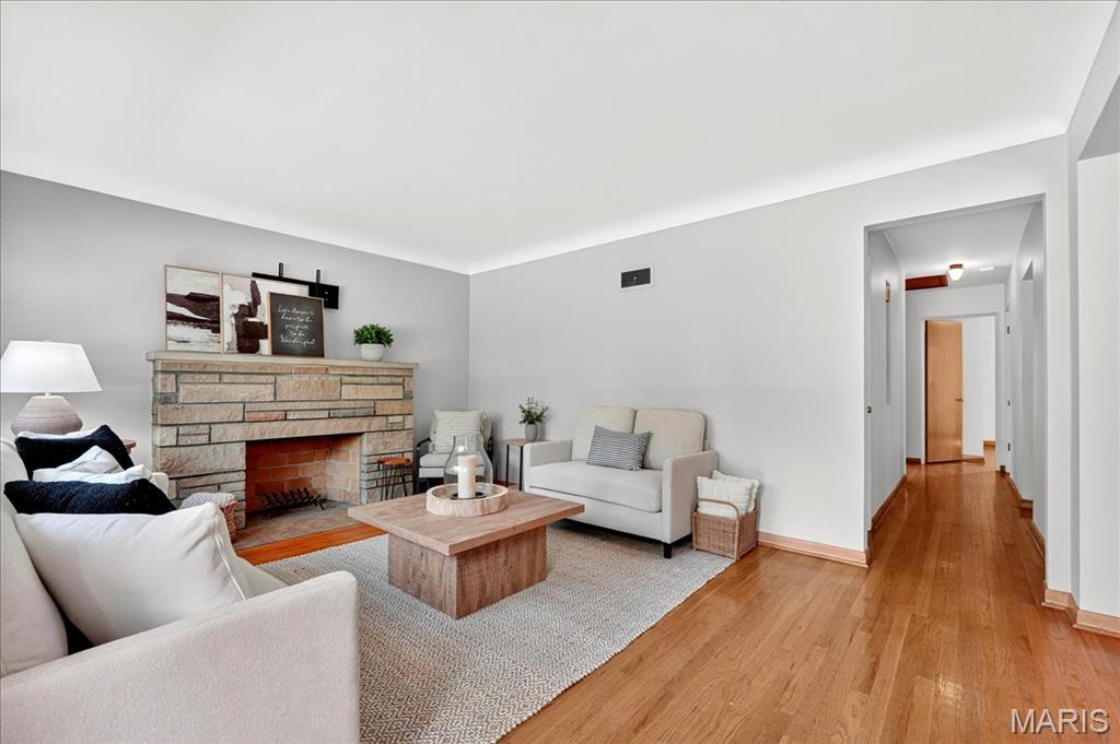 Welcome home to this charming bungalow tucked along one of St. Louis’ most desirable streets in the sought-after Lindenwood Park neighborhood! From the moment you arrive, you’ll love the inviting curb appeal, extra-wide tree-lined street, and spacious front yard. Inside, hardwood floors flow throughout the main level. The bright family room features a wall of windows, and the formal dining room opens to a kitchen with under-mounted sink and stainless refrigerator to stay. Down the hall are three comfortable bedrooms and a full bath. The lower level expands your living space with a large rec area, updated full bath, laundry room, and plenty of storage. Step outside to a fully fenced backyard with raised patio—perfect for relaxing or entertaining. Additional highlights include a detached oversized one-car garage, new roof (Aug 2025), updated plumbing and electric. Move-in ready and sure to impress!