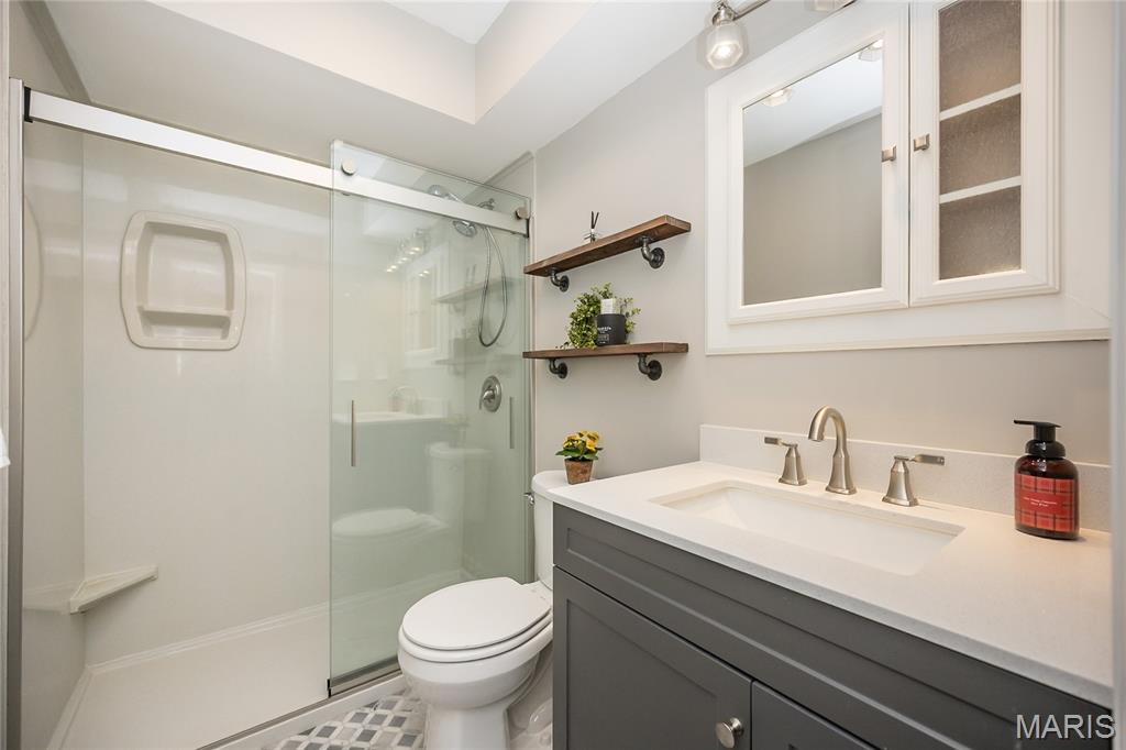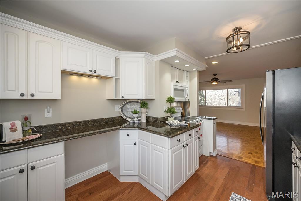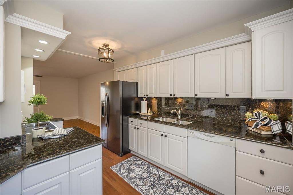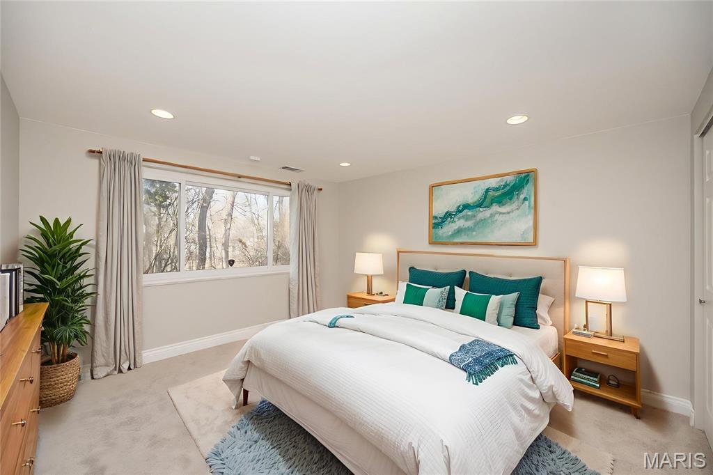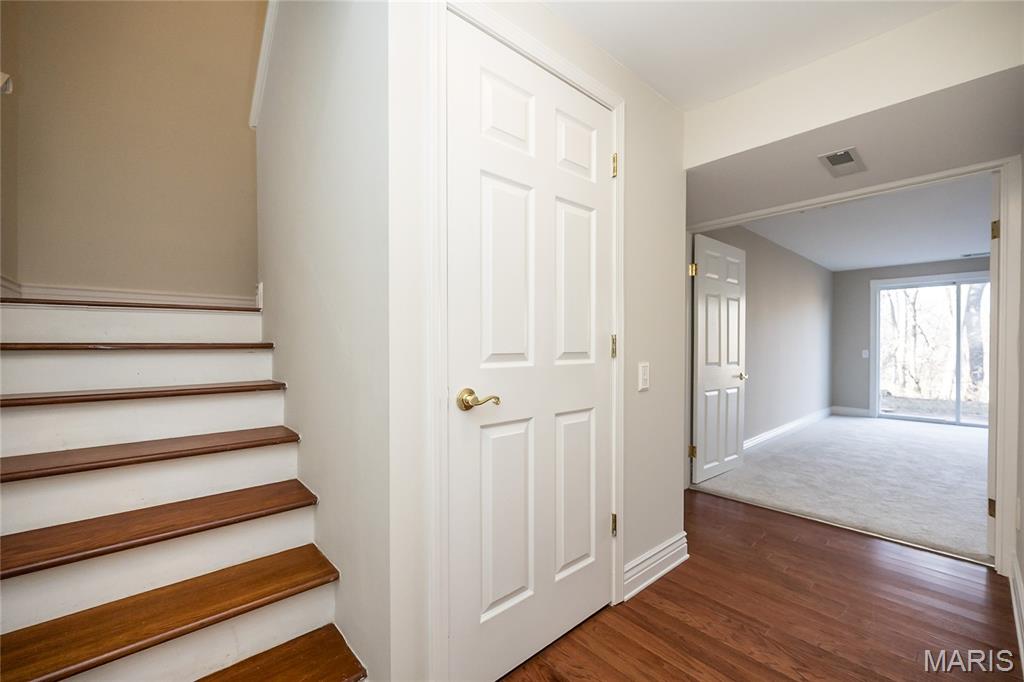 What a wonderful space for bird watchers and gardeners! The front courtyard has lots of room for beautiful plantings to enjoy from your kitchen window. Fresh neutral paint and new carpet welcome you as you create a warm living space. Beautiful kitchen with granite counters, shelving, white cabinets, space to sit for perusing recipes or gazing at your garden out the window. The great room/dining space is spacious as are the bedrooms & family room. There are lots of closets for storage & there are some engineered wood floors, parquet and carpet. The main level has a bedroom & updated full bath. The lower-level family room walks out to a private patio overlooking trees and nature, great for relaxing and watching the birds & wildlife. Huge walk-in closet in the family room. If you needed a 3rd bedroom, that space could serve as another bedroom. The lower level has a generously sized bedroom and an updated bath. The utility room is in the lower level with hook-ups for the laundry. The two-car garage has extra space on one side for a workbench or other storage. There is plenty of guest parking near. This one is located near the end of a cul-de-sac-like street. Convenient to the highway, shopping and schools! You will love it!