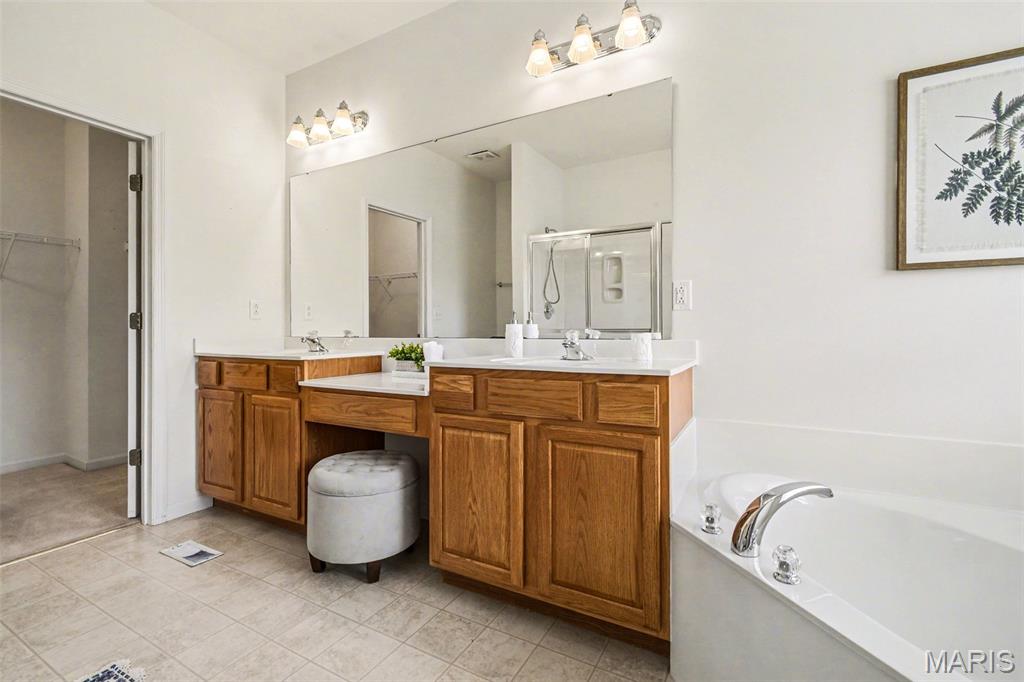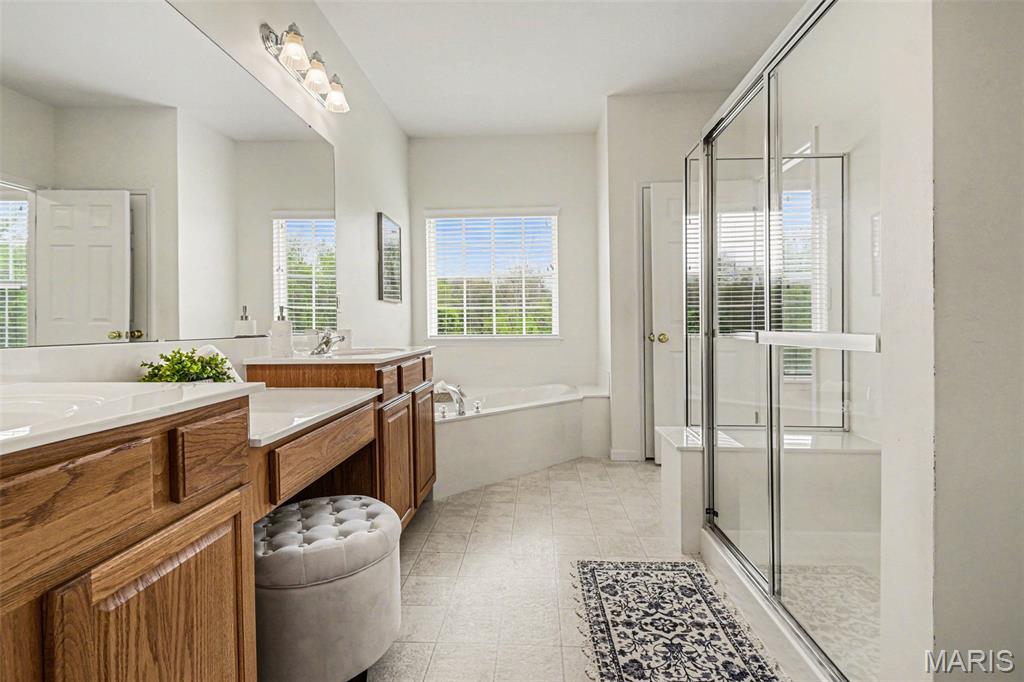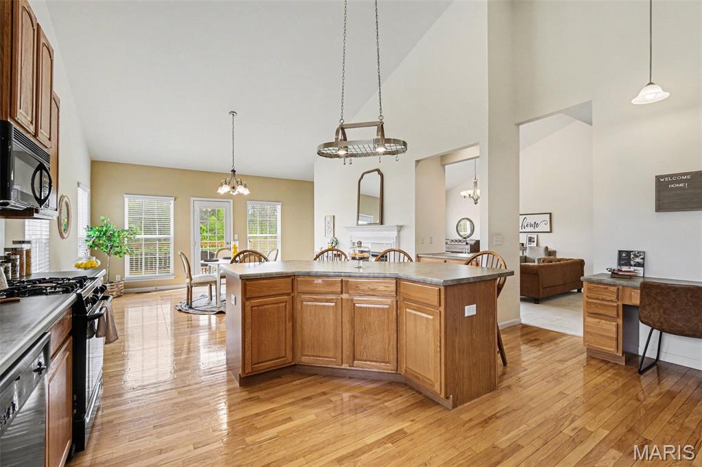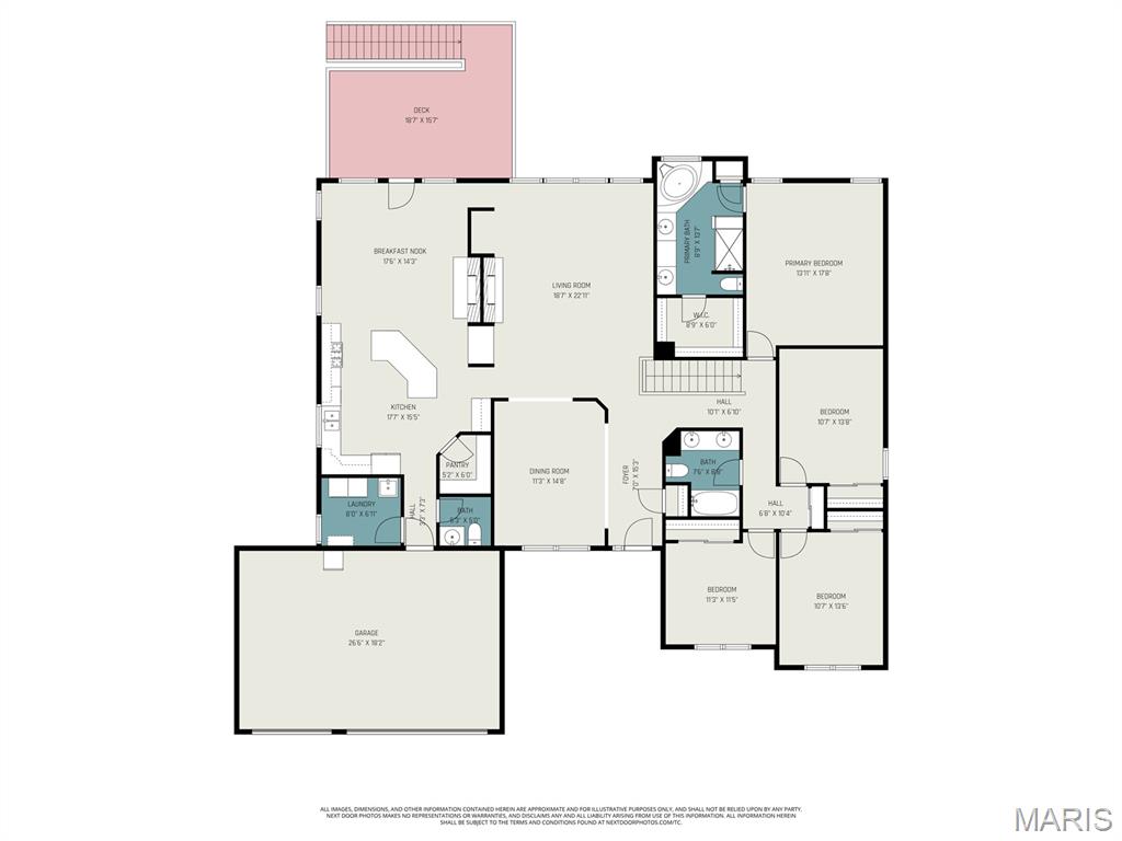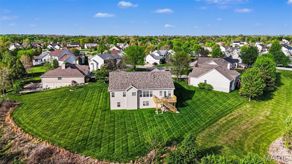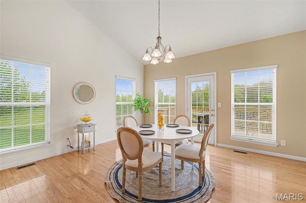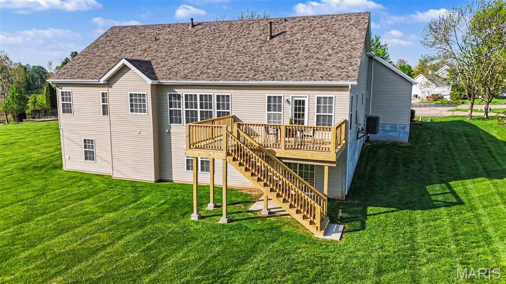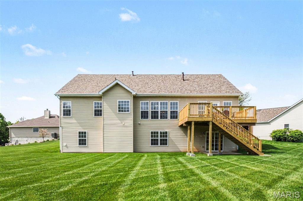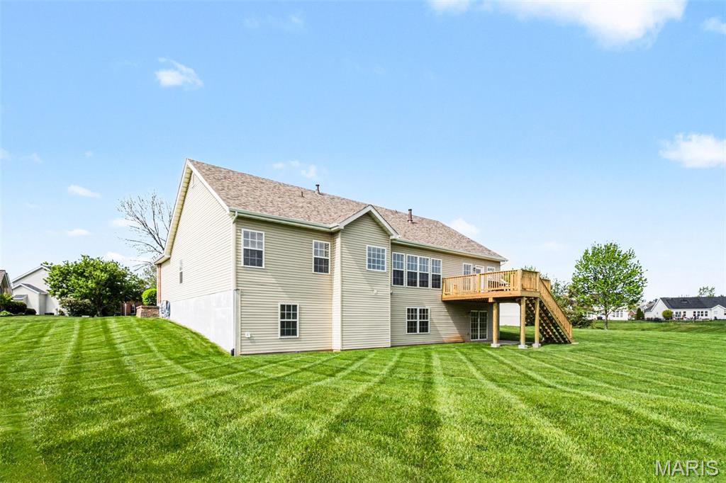 Spacious ranch home with over 4,500 finished sq. ft., offering 5 bedrooms, 3.5 baths, and a walkout lower level designed for both everyday living and entertaining. The open floor plan features vaulted ceilings in the living room, kitchen, and primary suite, along with 9’ ceilings on both the main and lower levels—creating a bright, airy feel throughout. Wood flooring runs through the entry, hallway, kitchen, and breakfast area. The kitchen flows seamlessly into the main living spaces, while the primary suite includes a double vanity, soaking tub, walk-in shower with bench, and walk-in closet—creating a comfortable private retreat. Additional conveniences include double vanity in the hall bath, coat and linen closets, main-level laundry, and recently cleaned carpet (April 2026). The finished walkout lower level expands your living space with a full bath, wet bar, and flexible areas for recreation, work, or guests in 5th bedroom. Enjoy outdoor living with a new deck (2025) overlooking a private, level backyard. Major updates include a new roof (2025), gutters and siding (2026), tankless water heater (2020), plus an electronic air purifier, water softener, and irrigation system. A 3-car garage provides ample parking and storage. This well-maintained home offers space, updates, and versatility—ready for its next owner! OFFER DEADLINE: Monday, April 20 at 10am with a response time of Tuesday, April 21 at 10am. Seller not waiver from this deadline.